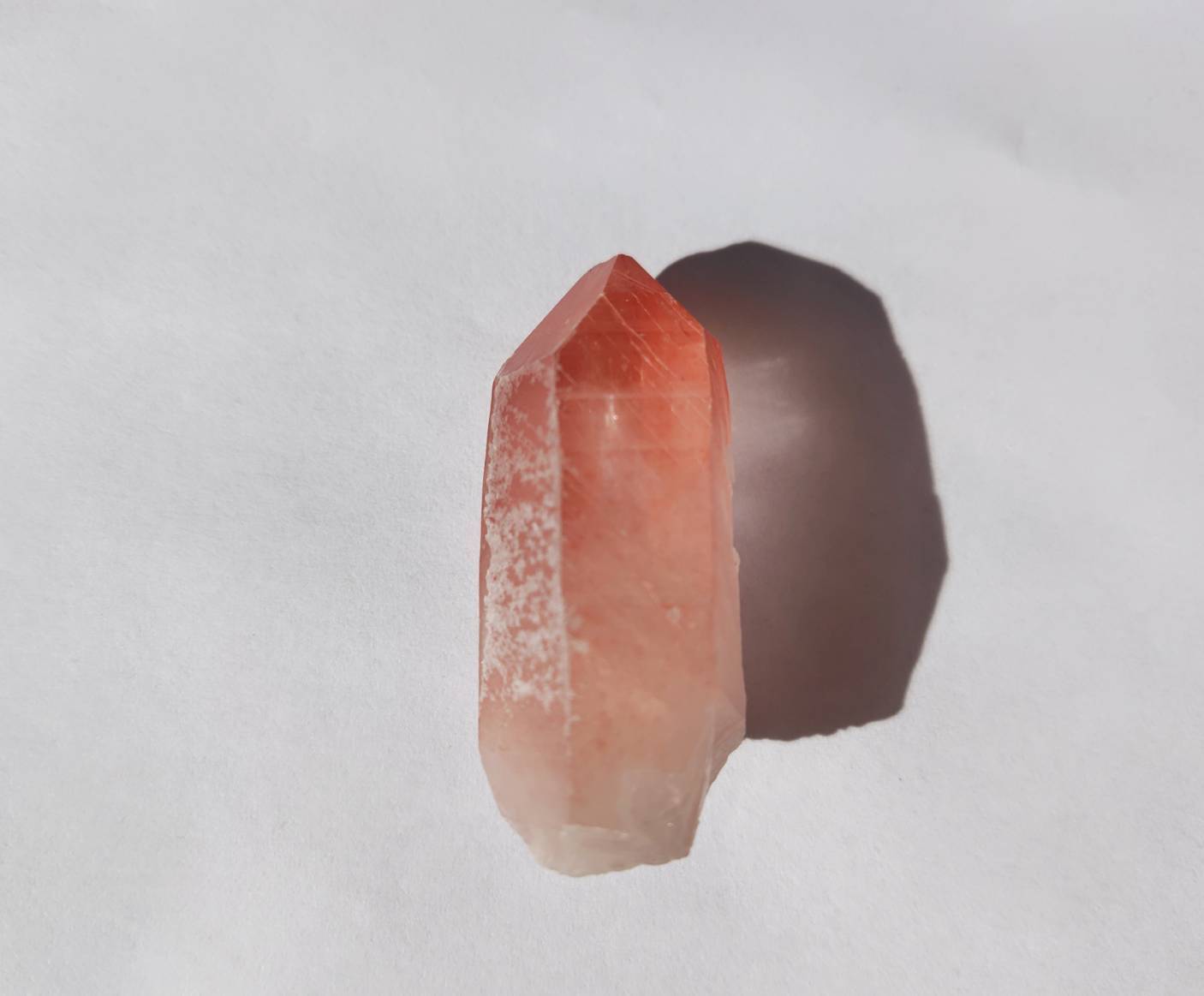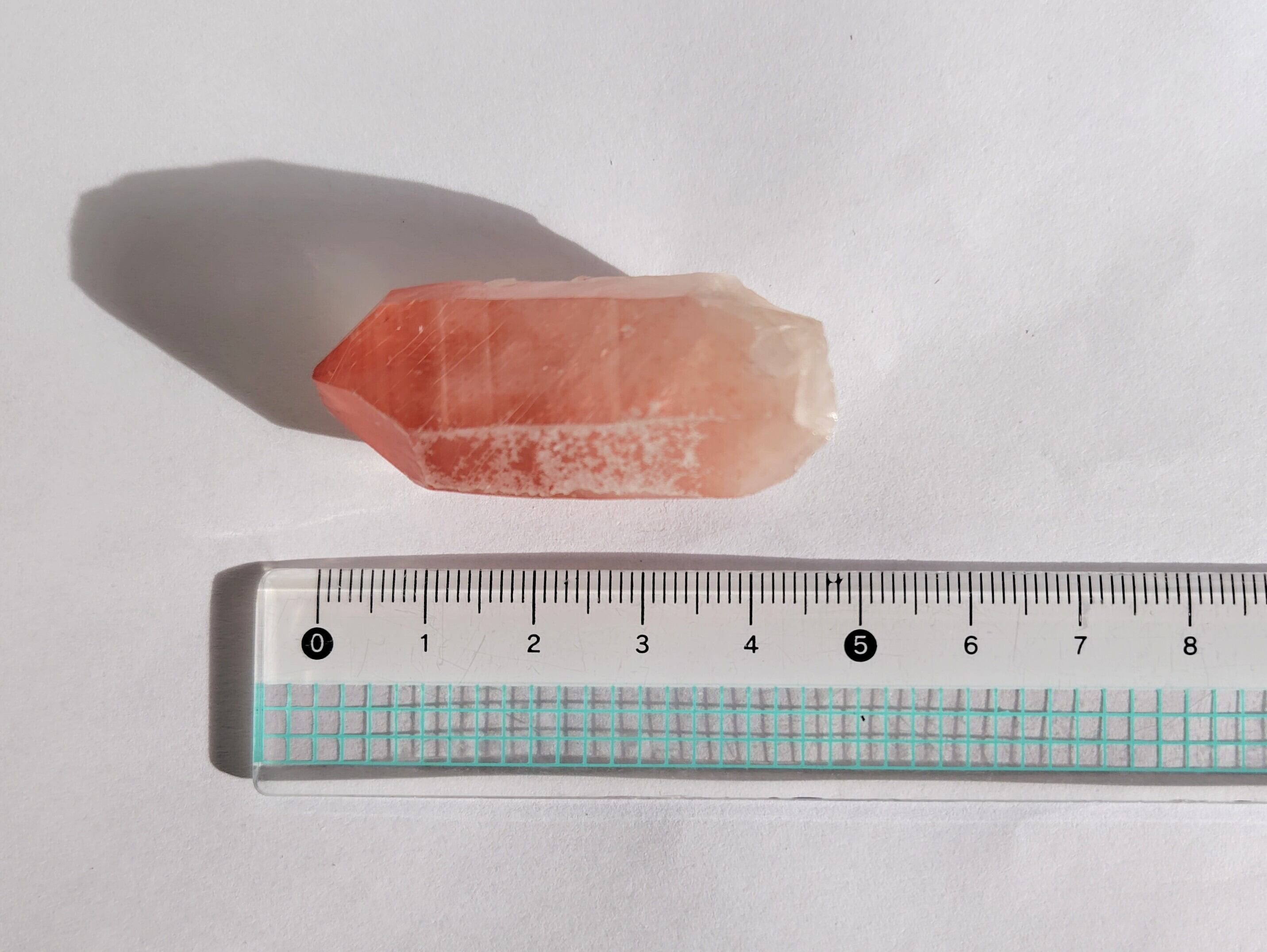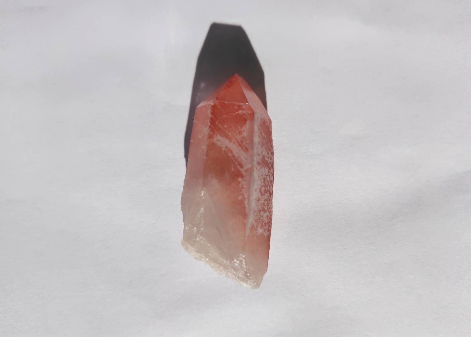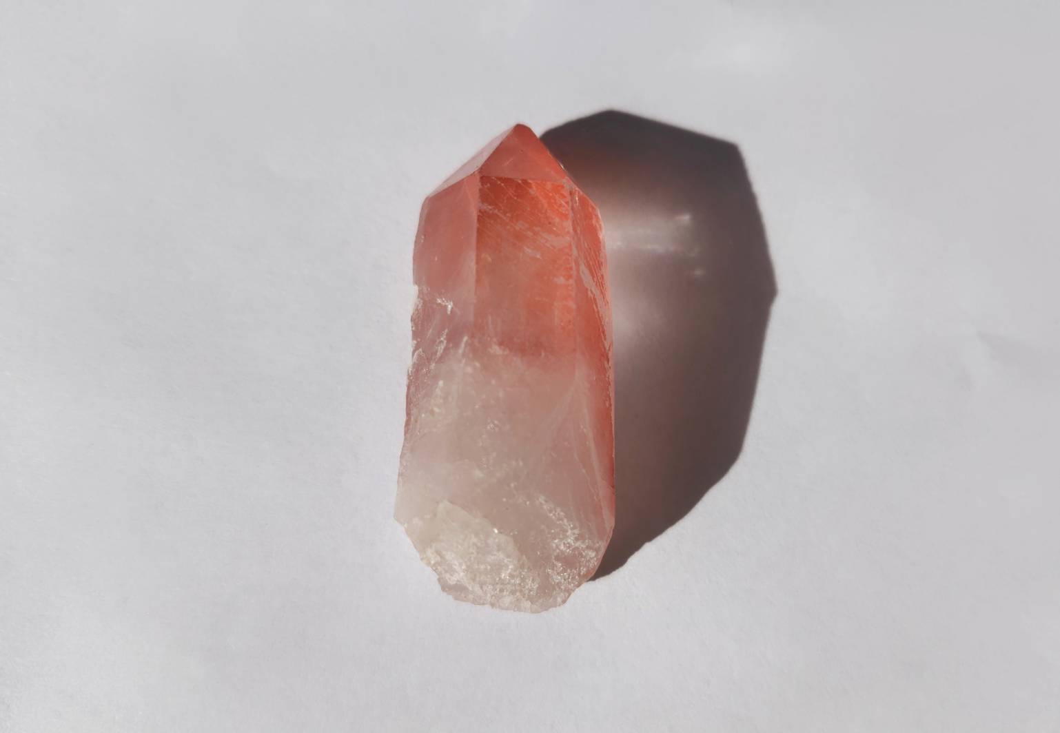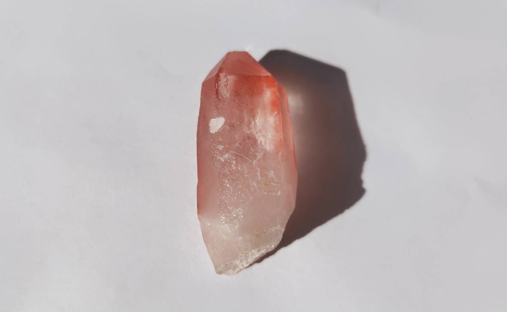 ピンク色のレムリアンシードクリスタル。鉄分とリチウムなどが結晶を覆い、淡いピンクから赤みを帯びた美しいグラデーションを生み出すピンクレムリアンシードクリスタル。